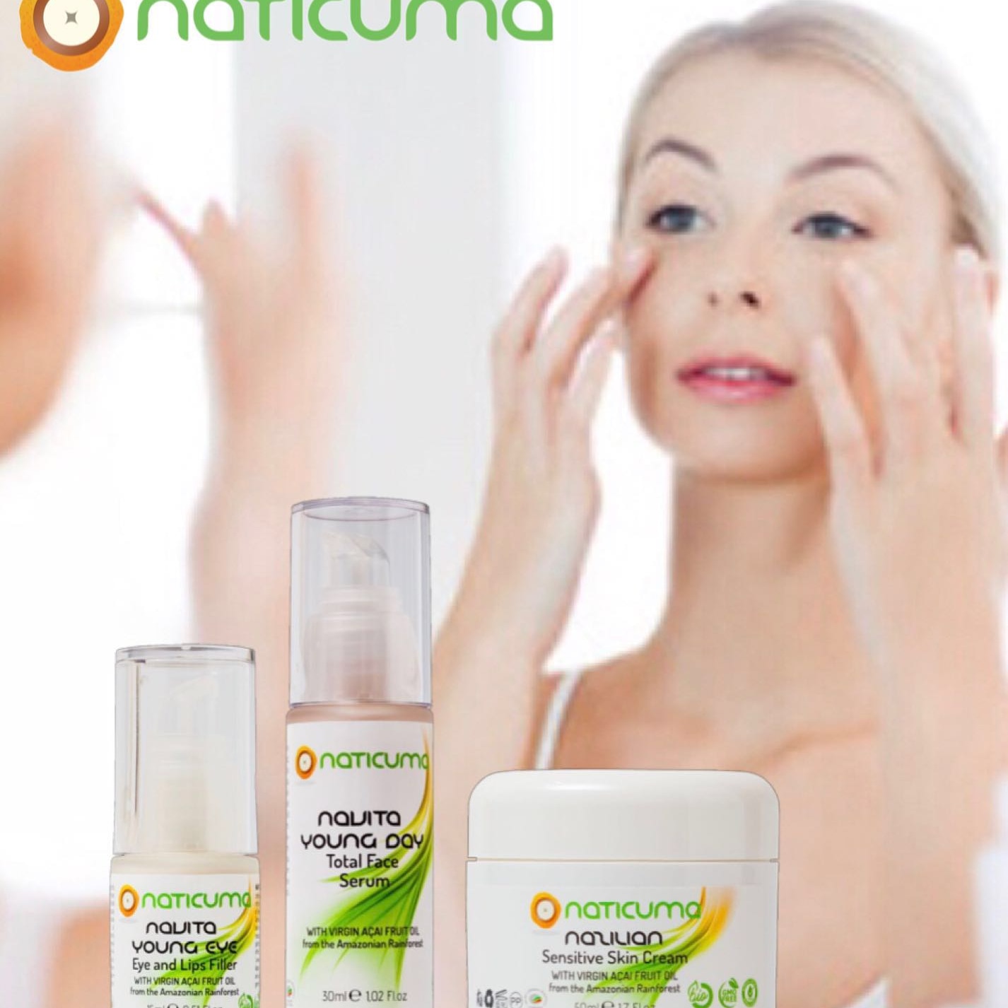 Acai is a good source of vitamin C, which is known to protect, firm and tighten, as well as the B vitamins and several minerals. Because of these nutrients, it shows promise in helping with sensitive skin. Enjoy healthy skin with Naticuma
